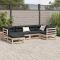 Salon de jardin 6 pcs bois de pin massifCet ensemble de canapés de jardin est le complément parfait de votre arrière-cour, terrasse ou patio, offrant un espace confortable et accueillant pour discuter avec la famille et les amis ou simplement se détendre et profiter de l'extérieur. Matériau robuste et durable : le bois de pin massif est connu pour sa résistance et sa durabilité. Ses grains droits et ses noeuds distinctifs contribuent à son charme rustique.Bien ventilé et prévention de l'accumulation d'eau : la conception à lattes favorise une circulation optimale de l'air et empêche efficacement l'accumulation d'eau, assurant ainsi une assise sèche et confortable.Conception modulaire : cet ensemble de meubles d'extérieur a une conception modulaire, ce qui le rend complètement flexible et facile à déplacer, afin que vous puissiez créer un agencement de meubles d'extérieur personnalisé. Bon à savoir :Pour que vos meubles d'extérieur restent beaux, nous vous recommandons de les protéger avec une housse imperméable. Maximum 110 kg par siège.