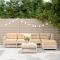 Salon de jardin 6 pcs bois de pin massifCet ensemble de salon de jardin en bois avec un design à lattes sera un excellent complément à votre jardin, patio ou terrasse pour profiter d'un moment agréable avec votre famille ou vos amis. Matériau robuste et durable : le bois de pin massif est connu pour sa résistance et sa durabilité. Ses grains droits et ses noeuds distinctifs contribuent à son charme rustique. Bien ventilé et prévention de l'accumulation d'eau : la conception à lattes favorise une circulation optimale de l'air et empêche efficacement l'accumulation d'eau, assurant ainsi une assise sèche et confortable. Utilisation polyvalente : le repose-pied de jardin peut non seulement être utilisé pour s'asseoir ou se détendre, mais il peut également être utilisé comme table basse pour contenir vos boissons, votre nourriture et d'autres décorations. Conception modulaire : cet ensemble de meubles d'extérieur a une conception modulaire, ce qui le rend complètement flexible et facile à déplacer, afin que vous puissiez créer un agencement de meubles d'extérieur personnalisé. Bon à savoir : Pour que vos meubles d'extérieur restent beaux, nous vous recommandons de les protéger avec une housse imperméable. Maximum 110 kg par siège.