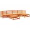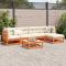 Salon de jardin 6 pcs cire marron bois de pin massifCet ensemble de canapés de jardin est le complément parfait de votre arrière-cour, terrasse ou patio, offrant un espace confortable et accueillant pour discuter avec la famille et les amis ou simplement se détendre et profiter de l'extérieur. Matériau robuste et durable : le bois de pin massif est connu pour sa résistance et sa durabilité. Ses grains droits et ses noeuds distinctifs contribuent à son charme rustique.Bien ventilé et prévention de l'accumulation d'eau : la conception à lattes favorise une circulation optimale de l'air et empêche efficacement l'accumulation d'eau, assurant ainsi une assise sèche et confortable.Conception modulaire : cet ensemble de meubles d'extérieur a une conception modulaire, ce qui le rend complètement flexible et facile à déplacer, afin que vous puissiez créer un agencement de meubles d'extérieur personnalisé. Bon à savoir :Pour que vos meubles d'extérieur restent beaux, nous vous recommandons de les protéger avec une housse imperméable. Maximum 110 kg par siège.