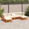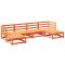 Salon de jardin 6 pcs cire marron bois de pin massifCet ensemble de canapés de jardin est le complément parfait de votre arrière-cour, terrasse ou patio, offrant un espace confortable et accueillant pour discuter avec la famille et les amis ou simplement se détendre et profiter de l'extérieur. Matériau robuste et durable : le bois de pin massif est connu pour sa résistance et sa durabilité. Ses grains droits et ses noeuds distinctifs contribuent à son charme rustique.Bien ventilé et prévention de l'accumulation d'eau : la conception à lattes favorise une circulation optimale de l'air et empêche efficacement l'accumulation d'eau, assurant ainsi une assise sèche et confortable.Conception modulaire : cet ensemble de meubles d'extérieur a une conception modulaire, ce qui le rend complètement flexible et facile à déplacer, afin que vous puissiez créer un agencement de meubles d'extérieur personnalisé. Bon à savoir :Pour que vos meubles d'extérieur restent beaux, nous vous recommandons de les protéger avec une housse imperméable. Maximum 110 kg par siège.