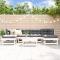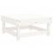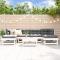 Salon de jardin 7 pcs Blanc Bois de pin massifCe salon de jardin en bois, qui se démarque par son design à lattes, sera un excellent supplément à votre jardin, patio ou terrasse pour profiter d'un moment agréable avec votre famille ou vos amis. Bois de pin massif : le bois de pin massif est un matériau naturel magnifique. Le bois de pin a un grain droit et les noeuds donnent au matériau son aspect caractéristique et rustique.Expérience d'assise confortable : le dossier ajoute un confort d'assise supplémentaire à l'ensemble de salon.Design modulaire : le canapé est flexible et facile à déplacer. Vous pouvez le combiner avec d'autres segments modulaires de la boutique en ligne pour créer vos propres configurations de salon de jardin ! Bon à savoir :Les coussins ne sont pas inclus.Pour que vos meubles d'extérieur restent beaux, nous vous recommandons de les protéger avec une housse imperméable. Maximum 110 kg par siège.