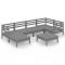 Salon de jardin 7 pcs Bois de pin massif GrisCet ensemble de salon de jardin en bois est un choix idéal pour vous détendre, profiter du beau temps, faire une sieste ou discuter en famille ou entre amis. Avec son design intemporel de palette, l'ensemble de canapés en bois ajoute une touche de charme rustique à votre terrasse, jardin ou salon. Fabriqué en bois de pin massif, cet ensemble de mobilier d'extérieur est très durable et résistant aux intempéries. Cet ensemble de canapés a une construction solide et nécessite peu d'entretien. De plus, la conception modulaire permet également de placer l'ensemble dans n'importe quel arrangement selon vos goûts. Remarque : afin de prolonger la durée de vie des meubles d'extérieur, nous vous recommandons de les protéger avec une housse imperméable. Maximum 110 kg par siège.