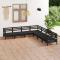 Salon de jardin 7 pcs Bois de pin massif NoirCet ensemble de salon de jardin en bois est un choix idéal pour vous détendre, profiter du beau temps, faire une sieste ou discuter en famille ou entre amis. Avec son design intemporel de palette, l'ensemble de canapés en bois ajoute une touche de charme rustique à votre terrasse, jardin ou salon. Fabriqué en bois de pin massif, cet ensemble de mobilier d'extérieur est très durable et résistant aux intempéries. Cet ensemble de canapés a une construction solide et nécessite peu d'entretien. De plus, la conception modulaire permet également de placer l'ensemble dans n'importe quel arrangement selon vos goûts. Remarque : afin de prolonger la durée de vie des meubles d'extérieur, nous vous recommandons de les protéger avec une housse imperméable. Maximum 110 kg par siège.