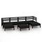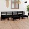 Salon de jardin 7 pcs Noir Bois de pin massifCet ensemble de salon de jardin en bois est un choix idéal pour vous détendre, profiter du beau temps, faire une sieste ou discuter en famille ou entre amis. Avec son design intemporel de palette, l'ensemble de canapés en bois ajoute une touche de charme rustique à votre terrasse, jardin ou salon. Fabriqué en bois de pin massif, cet ensemble de salon de patio est très durable et résistant aux intempéries. Cet ensemble de meubles a une construction solide et nécessite peu d'entretien. De plus, la conception modulaire permet également de placer l'ensemble dans n'importe quel arrangement selon vos goûts. Remarque : afin de prolonger la durée de vie des meubles d'extérieur, nous vous recommandons de les protéger avec une housse imperméable. Maximum 110 kg par siège.
