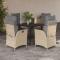 Matériau : résine tressée, acier enduit de poudre, bois d'eucalyptus massif avec une finition à l'huile