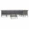 Salon de jardin 7 pcs avec coussins Gris Résine tresséeProfitez d'un moment de café confortable dans votre espace extérieur avec cet ensemble de salon de jardin ! C'est un complément parfait à votre jardin et à votre terrasse, créant une impression durable ! Matériau résistant aux intempéries : la résine tressée, également connue sous le nom de rotin poly, résiste aux intempéries et est facile à nettoyer. Elle reste belle à l'extérieur pendant une longue période. Elle offre une excellente qualité, commodité et un aspect esthétique.Cadre robuste : le cadre en acier enduit de poudre rend l'ensemble de salon d'extérieur robuste et stable pour une utilisation quotidienne à l'extérieur.Expérience d'assise confortable : les dossiers ajoutent un confort d'assise supplémentaire pour l'ensemble de salon de terrasse. De plus, les coussins bien rembourrés offrent du confort pendant votre temps d'assise.Conception modulaire : chaque article est flexible et facile à déplacer, vous pouvez donc la combiner avec d'autres segments modulaires dans la boutique en ligne pour créer vos propres configurations de salon de jardin ! Remarque :Pour que vos meubles d'extérieur restent beaux, nous vous recommandons de les protéger avec une housse imperméable. Maximum 110 kg par siège. Soyez conscient du risque de feu ouvert et d'autres sources de forte chaleur à proximité de l'appareil.