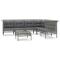 Salon de jardin 7 pcs avec coussins Gris Résine tresséeProfitez d'un moment de café confortable dans votre espace extérieur avec cet ensemble de salon de jardin ! C'est un complément parfait à votre jardin et à votre terrasse, créant une impression durable ! Matériau résistant aux intempéries : la résine tressée, également connue sous le nom de rotin poly, résiste aux intempéries et est facile à nettoyer. Elle reste belle à l'extérieur pendant une longue période. Elle offre une excellente qualité, commodité et un aspect esthétique.Cadre robuste : le cadre en acier enduit de poudre rend l'ensemble de salon d'extérieur robuste et stable pour une utilisation quotidienne à l'extérieur.Expérience d'assise confortable : les dossiers ajoutent un confort d'assise supplémentaire pour l'ensemble de salon de terrasse. De plus, les coussins bien rembourrés offrent du confort pendant votre temps d'assise.Conception modulaire : chaque article est flexible et facile à déplacer, vous pouvez donc la combiner avec d'autres segments modulaires dans la boutique en ligne pour créer vos propres configurations de salon de jardin ! Remarque :Pour que vos meubles d'extérieur restent beaux, nous vous recommandons de les protéger avec une housse imperméable. Maximum 110 kg par siège. Soyez conscient du risque de feu ouvert et d'autres sources de forte chaleur à proximité de l'appareil.