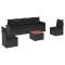 Salon de jardin 7 pcs avec coussins noir résine tresséeCet ensemble de canapés de jardin est le complément parfait de votre arrière-cour, terrasse ou patio, offrant un espace confortable et accueillant pour discuter avec la famille et les amis ou simplement se détendre et profiter de l'extérieur. Matériau durable : la résine tressée, également connue sous le nom de poly rotin, est un matériau synthétique solide et nécessitant peu d'entretien qui ressemble au rotin naturel. Il est léger, facile à nettoyer et couramment utilisé pour les meubles d'extérieur en raison de sa durabilité et de ses propriétés de résistance aux intempéries.Expérience d'assise confortable : ce mobilier d'extérieur, doté de coussins épais, offre une expérience d'assise confortable.Dessus stable et facile à nettoyer : cette table de jardin a un dessus en bois d'acacia robuste, durable et facile à nettoyer avec un chiffon humide.Housse amovible et lavable : ces coussins de siège sont dotés de housses amovibles pour un lavage et un entretien faciles.Conception modulaire : cet ensemble de meubles d'extérieur a une conception modulaire, ce qui le rend complètement flexible et facile à déplacer, afin que vous puissiez créer un agencement de meubles d'extérieur personnalisé. Bon à savoir :Pour que vos meubles d'extérieur restent beaux, nous vous recommandons de les protéger avec une housse imperméable.