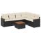 Salon de jardin 7 pcs avec coussins noir résine tresséeCet ensemble de canapés de jardin est le complément parfait de votre arrière-cour, terrasse ou patio, offrant un espace confortable et accueillant pour discuter avec la famille et les amis ou simplement se détendre et profiter de l'extérieur. Matériau durable : la résine tressée, également connue sous le nom de poly rotin, est un matériau synthétique solide et nécessitant peu d'entretien qui ressemble au rotin naturel. Il est léger, facile à nettoyer et couramment utilisé pour les meubles d'extérieur en raison de sa durabilité et de ses propriétés de résistance aux intempéries.Dessus stable et facile à nettoyer : cette table de jardin a un dessus en bois d'acacia robuste, durable et facile à nettoyer avec un chiffon humide.Housse amovible et lavable : ces coussins de siège sont dotés de housses amovibles pour un lavage et un entretien faciles.Cadre robuste et stable : le cadre en acier enduit de poudre assure la solidité et la stabilité du meuble de jardin pour une utilisation quotidienne à l'extérieur.Conception modulaire : cet ensemble de meubles d'extérieur a une conception modulaire, ce qui le rend complètement flexible et facile à déplacer, afin que vous puissiez créer un agencement de meubles d'extérieur personnalisé. Bon à savoir :Pour que vos meubles d'extérieur restent beaux, nous vous recommandons de les protéger avec une housse imperméable.