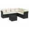 Salon de jardin 7 pcs avec coussins noir résine tresséeCet ensemble de canapés de jardin est le complément parfait de votre arrière-cour, terrasse ou patio, offrant un espace confortable et accueillant pour discuter avec la famille et les amis ou simplement se détendre et profiter de l'extérieur. Matériau durable : la résine tressée, également connue sous le nom de poly rotin, est un matériau synthétique solide et nécessitant peu d'entretien qui ressemble au rotin naturel. Il est léger, facile à nettoyer et couramment utilisé pour les meubles d'extérieur en raison de sa durabilité et de ses propriétés de résistance aux intempéries.Expérience d'assise confortable : ce mobilier d'extérieur, doté de coussins épais, offre une expérience d'assise confortable.Dessus en verre : le dessus de la table d'extérieur est fabriqué en verre trempé solide et durable, ce qui le rend facile à nettoyer avec un chiffon humide et ajoute une touche d'élégance à votre espace extérieur.Housse amovible et lavable : ces coussins de siège sont dotés de housses amovibles pour un lavage et un entretien faciles.Conception modulaire : cet ensemble de meubles d'extérieur a une conception modulaire, ce qui le rend complètement flexible et facile à déplacer, afin que vous puissiez créer un agencement de meubles d'extérieur personnalisé. Bon à savoir :Pour que vos meubles d'extérieur restent beaux, nous vous recommandons de les protéger avec une housse imperméable.