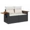 Salon de jardin 7 pcs avec coussins noir résine tresséeCet ensemble de canapés de jardin est le complément parfait de votre arrière-cour, terrasse ou patio, offrant un espace confortable et accueillant pour discuter avec la famille et les amis ou simplement se détendre et profiter de l'extérieur. Matériau durable : la résine tressée, également connue sous le nom de poly rotin, est un matériau synthétique solide et nécessitant peu d'entretien qui ressemble au rotin naturel. Il est léger, facile à nettoyer et couramment utilisé pour les meubles d'extérieur en raison de sa durabilité et de ses propriétés de résistance aux intempéries.Table d'appoint pratique : ce mobilier d'extérieur comprend une table d'appoint pliable avec un ressort à gaz sur les accoudoirs, offrant un endroit pratique pour garder vos essentiels à portée de main.Housse amovible et lavable : ces coussins de siège sont dotés de housses amovibles pour un lavage et un entretien faciles.Conception modulaire : cet ensemble de meubles d'extérieur a une conception modulaire, ce qui le rend complètement flexible et facile à déplacer, afin que vous puissiez créer un agencement de meubles d'extérieur personnalisé. Bon à savoir :Pour que vos meubles d'extérieur restent beaux, nous vous recommandons de les protéger avec une housse imperméable.