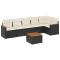 Salon de jardin 7 pcs avec coussins noir résine tresséeCet ensemble de canapés de jardin est le complément parfait de votre arrière-cour, terrasse ou patio, offrant un espace confortable et accueillant pour discuter avec la famille et les amis ou simplement se détendre et profiter de l'extérieur. Matériau durable : la résine tressée, également connue sous le nom de poly rotin, est un matériau synthétique solide et nécessitant peu d'entretien qui ressemble au rotin naturel. Il est léger, facile à nettoyer et couramment utilisé pour les meubles d'extérieur en raison de sa durabilité et de ses propriétés de résistance aux intempéries.Dessus stable et facile à nettoyer : cette table de jardin a un dessus en bois d'acacia robuste, durable et facile à nettoyer avec un chiffon humide.Housse amovible et lavable : ces coussins de siège sont dotés de housses amovibles pour un lavage et un entretien faciles.Cadre robuste et stable : le cadre en acier enduit de poudre assure la solidité et la stabilité du meuble de jardin pour une utilisation quotidienne à l'extérieur.Conception modulaire : cet ensemble de meubles d'extérieur a une conception modulaire, ce qui le rend complètement flexible et facile à déplacer, afin que vous puissiez créer un agencement de meubles d'extérieur personnalisé. Bon à savoir :Pour que vos meubles d'extérieur restent beaux, nous vous recommandons de les protéger avec une housse imperméable.