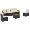 Salon de jardin 7 pcs avec coussins noir résine tresséeCet ensemble de canapés de jardin est le complément parfait de votre arrière-cour, terrasse ou patio, offrant un espace confortable et accueillant pour discuter avec la famille et les amis ou simplement se détendre et profiter de l'extérieur. Matériau durable : la résine tressée, également connue sous le nom de poly rotin, est un matériau synthétique solide et nécessitant peu d'entretien qui ressemble au rotin naturel. Il est léger, facile à nettoyer et couramment utilisé pour les meubles d'extérieur en raison de sa durabilité et de ses propriétés de résistance aux intempéries.Expérience d'assise confortable : ce mobilier d'extérieur, doté de coussins épais, offre une expérience d'assise confortable.Dessus stable et facile à nettoyer : cette table de jardin a un dessus en bois d'acacia robuste, durable et facile à nettoyer avec un chiffon humide.Housse amovible et lavable : ces coussins de siège sont dotés de housses amovibles pour un lavage et un entretien faciles.Conception modulaire : cet ensemble de meubles d'extérieur a une conception modulaire, ce qui le rend complètement flexible et facile à déplacer, afin que vous puissiez créer un agencement de meubles d'extérieur personnalisé. Bon à savoir :Pour que vos meubles d'extérieur restent beaux, nous vous recommandons de les protéger avec une housse imperméable.