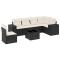 Salon de jardin 7 pcs avec coussins noir résine tressée