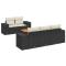 Salon de jardin 7 pcs avec coussins noir résine tresséeCet ensemble de canapés de jardin est le complément parfait de votre arrière-cour, terrasse ou patio, offrant un espace confortable et accueillant pour discuter avec la famille et les amis ou simplement se détendre et profiter de l'extérieur. Matériau durable : la résine tressée, également connue sous le nom de poly rotin, est un matériau synthétique solide et nécessitant peu d'entretien qui ressemble au rotin naturel. Elle est légère, facile à nettoyer et couramment utilisée pour les meubles d'extérieur en raison de sa durabilité et de ses propriétés de résistance aux intempéries. Fonction de rangement avec sac résistant à l'eau : chaque siège de jardin dispose d'un espace de rangement sous l'assise, complété par un sac résistant à l'eau pour ranger les coussins, les jouets et d'autres objets. Le sac intérieur est doté d'un couvercle et peut être solidement fixé au siège à l'aide de bandes auto-agrippantes pour plus de stabilité. Dessus de table réglable : le dessus de table peut être soulevé pour rendre la table plus haute, ce qui transforme la table d'extérieur d'une table basse à une table de salle à manger. Elle est parfaite pour recevoir des invités ou prendre des repas à l'extérieur. Housse amovible et lavable : ces coussins de siège sont dotés de housses amovibles pour un lavage et un entretien faciles. Cadre robuste et stable : le cadre en acier enduit de poudre est solide, stable, durable et résistant à la corrosion et aux intempéries, ce qui garantit des performances durables. Bon à savoir : Pour que vos meubles d'extérieur restent beaux, nous vous recommandons de les protéger avec une housse imperméable. ,