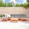 Salon de jardin 7 pcs bois massif douglasCe salon de jardin en bois, qui se démarque par son design à lattes, sera un excellent supplément à votre jardin, patio ou terrasse pour profiter d'un moment agréable avec votre famille ou vos amis. Bois de douglas massif : le bois de douglas massif est un bois très durable qui est parfait pour l'extérieur. Le bois de douglas est également solide et nécessite moins d'entretien même sous l'influence des intempéries.Expérience d'assise confortable : le dossier ajoute un confort d'assise supplémentaire à l'ensemble de salon.Design modulaire : le canapé est flexible et facile à déplacer. Vous pouvez le combiner avec d'autres segments modulaires de la boutique en ligne pour créer vos propres configurations de salon de jardin ! Bon à savoir :Les coussins ne sont pas inclus.Pour que vos meubles d'extérieur restent beaux, nous vous recommandons de les protéger avec une housse imperméable. Maximum 110 kg par siège.
