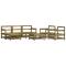 Salon de jardin 7 pcs bois de pin imprégnéCe salon de jardin en bois, qui se démarque par son design à lattes, sera un excellent supplément à votre jardin, patio ou terrasse pour profiter d'un moment agréable avec votre famille ou vos amis. Bois imprégné : le bois de pin massif est un matériau naturel magnifique. Le bois de pin a un grain droit et les noeuds lui confèrent un aspect rustique caractéristique. L'imprégnation est un processus de conservation réalisé à l'aide d'autoclaves. Le traitement sous pression augmente la résistance à la pourriture et aux intempéries. Cadre robuste et stable : les cadres en bois rendent l'ensemble de salon robuste et stable pour une utilisation quotidienne à l'extérieur. Design modulaire : le canapé est flexible et facile à déplacer. Vous pouvez le combiner avec d'autres segments modulaires de la boutique en ligne pour créer vos propres configurations de salon de jardin ! Bon à savoir : Pour que vos meubles d'extérieur restent beaux, nous vous recommandons de les protéger avec une housse imperméable. Les coussins ne sont pas inclus dans la livraison. Maximum 110 kg par siège.