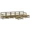 Salon de jardin 7 pcs bois de pin imprégnéCe salon de jardin en bois, qui se démarque par son design à lattes, sera un excellent supplément à votre jardin, patio ou terrasse pour profiter d'un moment agréable avec votre famille ou vos amis. Bois imprégné : le bois de pin massif est un matériau naturel magnifique. Le bois de pin a un grain droit et les noeuds lui confèrent un aspect rustique caractéristique. L'imprégnation est un processus de conservation réalisé à l'aide d'autoclaves. Le traitement sous pression augmente la résistance à la pourriture et aux intempéries. Expérience d'assise confortable : le dossier ajoute un confort d'assise supplémentaire au canapé d'extérieur. Design modulaire : le canapé est flexible et facile à déplacer. Vous pouvez le combiner avec d'autres segments modulaires de la boutique en ligne pour créer vos propres configurations de salon de jardin ! Bon à savoir : Pour que vos meubles d'extérieur restent beaux, nous vous recommandons de les protéger avec une housse imperméable. Les coussins ne sont pas inclus dans la livraison. Maximum 110 kg par siège.