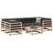 Salon de jardin 7 pcs bois de pin massifCet ensemble de canapés de jardin est le complément parfait de votre arrière-cour, terrasse ou patio, offrant un espace confortable et accueillant pour discuter avec la famille et les amis ou simplement se détendre et profiter de l'extérieur. Matériau robuste et durable : le bois de pin massif est connu pour sa résistance et sa durabilité. Ses grains droits et ses noeuds distinctifs contribuent à son charme rustique.Bien ventilé et prévention de l'accumulation d'eau : la conception à lattes favorise une circulation optimale de l'air et empêche efficacement l'accumulation d'eau, assurant ainsi une assise sèche et confortable.Conception modulaire : cet ensemble de meubles d'extérieur a une conception modulaire, ce qui le rend complètement flexible et facile à déplacer, afin que vous puissiez créer un agencement de meubles d'extérieur personnalisé. Bon à savoir :Pour que vos meubles d'extérieur restent beaux, nous vous recommandons de les protéger avec une housse imperméable. Maximum 110 kg par siège.