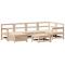 Salon de jardin 7 pcs bois de pin massifCet ensemble de salon de jardin en bois avec un design à lattes sera un excellent complément à votre jardin, patio ou terrasse pour profiter d'un moment agréable avec votre famille ou vos amis. Matériau robuste et durable : le bois de pin massif est connu pour sa résistance et sa durabilité. Ses grains droits et ses noeuds distinctifs contribuent à son charme rustique. Bien ventilé et prévention de l'accumulation d'eau : la conception à lattes favorise une circulation optimale de l'air et empêche efficacement l'accumulation d'eau, assurant ainsi une assise sèche et confortable. Utilisation polyvalente : le repose-pied de jardin peut non seulement être utilisé pour s'asseoir ou se détendre, mais il peut également être utilisé comme table basse pour contenir vos boissons, votre nourriture et d'autres décorations. Conception modulaire : cet ensemble de meubles d'extérieur a une conception modulaire, ce qui le rend complètement flexible et facile à déplacer, afin que vous puissiez créer un agencement de meubles d'extérieur personnalisé. Bon à savoir : Pour que vos meubles d'extérieur restent beaux, nous vous recommandons de les protéger avec une housse imperméable. Maximum 110 kg par siège.
