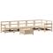 Salon de jardin 7 pcs bois de pin massifCet ensemble de salon de jardin en bois avec un design à lattes sera un excellent complément à votre jardin, patio ou terrasse pour profiter d'un moment agréable avec votre famille ou vos amis. Matériau robuste et durable : le bois de pin massif est connu pour sa résistance et sa durabilité. Ses grains droits et ses noeuds distinctifs contribuent à son charme rustique. Bien ventilé et prévention de l'accumulation d'eau : la conception à lattes favorise une circulation optimale de l'air et empêche efficacement l'accumulation d'eau, assurant ainsi une assise sèche et confortable. Utilisation polyvalente : le repose-pied de jardin peut non seulement être utilisé pour s'asseoir ou se détendre, mais il peut également être utilisé comme table basse pour contenir vos boissons, votre nourriture et d'autres décorations. Conception modulaire : cet ensemble de meubles d'extérieur a une conception modulaire, ce qui le rend complètement flexible et facile à déplacer, afin que vous puissiez créer un agencement de meubles d'extérieur personnalisé. Bon à savoir : Pour que vos meubles d'extérieur restent beaux, nous vous recommandons de les protéger avec une housse imperméable. Maximum 110 kg par siège.