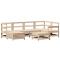 Salon de jardin 7 pcs bois de pin massifCet ensemble de salon de jardin en bois avec un design à lattes sera un excellent complément à votre jardin, patio ou terrasse pour profiter d'un moment agréable avec votre famille ou vos amis. Matériau robuste et durable : le bois de pin massif est connu pour sa résistance et sa durabilité. Ses grains droits et ses noeuds distinctifs contribuent à son charme rustique. Bien ventilé et prévention de l'accumulation d'eau : la conception à lattes favorise une circulation optimale de l'air et empêche efficacement l'accumulation d'eau, assurant ainsi une assise sèche et confortable. Utilisation polyvalente : le repose-pied de jardin peut non seulement être utilisé pour s'asseoir ou se détendre, mais il peut également être utilisé comme table basse pour contenir vos boissons, votre nourriture et d'autres décorations. Conception modulaire : cet ensemble de meubles d'extérieur a une conception modulaire, ce qui le rend complètement flexible et facile à déplacer, afin que vous puissiez créer un agencement de meubles d'extérieur personnalisé. Bon à savoir : Pour que vos meubles d'extérieur restent beaux, nous vous recommandons de les protéger avec une housse imperméable. Maximum 110 kg par siège.
