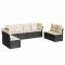 Salon de jardin 8 pcs avec coussins noir résine tresséeCet ensemble de canapés de jardin est le complément parfait de votre arrière-cour, terrasse ou patio, offrant un espace confortable et accueillant pour discuter avec la famille et les amis ou simplement se détendre et profiter de l'extérieur. Matériau durable : la résine tressée, également connue sous le nom de poly rotin, est un matériau synthétique solide et nécessitant peu d'entretien qui ressemble au rotin naturel. Il est léger, facile à nettoyer et couramment utilisé pour les meubles d'extérieur en raison de sa durabilité et de ses propriétés de résistance aux intempéries.Fonction de rangement avec sac résistant à l'eau : chaque siège de jardin dispose d'un espace de rangement sous l'assise, complété par un sac résistant à l'eau pour ranger les coussins, les jouets et d'autres objets. Les sacs intérieurs sont dotés d'un couvercle et peuvent être solidement fixés aux sièges à l'aide de bandes auto-agrippantes pour plus de stabilité.Housse amovible et lavable : ces coussins de siège sont dotés de housses amovibles pour un lavage et un entretien faciles.Conception modulaire : cet ensemble de meubles d'extérieur a une conception modulaire, ce qui le rend complètement flexible et facile à déplacer, afin que vous puissiez créer un agencement de meubles d'extérieur personnalisé. Bon à savoir :Pour que vos meubles d'extérieur restent beaux, nous vous recommandons de les protéger avec une housse imperméable.