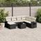 Salon de jardin 8 pcs avec coussins noir résine tresséeCet ensemble de canapés de jardin est le complément parfait de votre arrière-cour, terrasse ou patio, offrant un espace confortable et accueillant pour discuter avec la famille et les amis ou simplement se détendre et profiter de l'extérieur. Matériau durable : la résine tressée, également connue sous le nom de poly rotin, est un matériau synthétique solide et nécessitant peu d'entretien qui ressemble au rotin naturel. Il est léger, facile à nettoyer et couramment utilisé pour les meubles d'extérieur en raison de sa durabilité et de ses propriétés de résistance aux intempéries. Dessus en verre : le dessus de la table d'extérieur est fabriqué en verre trempé solide et durable, ce qui le rend facile à nettoyer avec un chiffon humide et ajoute une touche d'élégance à votre espace extérieur. Table d'appoint pratique : ce mobilier d'extérieur comprend des tables d'appoint pliables avec un ressort à gaz sur les accoudoirs, offrant des endroits pratiques pour garder vos essentiels à portée de main. Expérience d'assise confortable : ce mobilier d'extérieur, doté de coussins épais, offre une expérience d'assise confortable. Conception modulaire : cet ensemble de meubles d'extérieur a une conception modulaire, ce qui le rend complètement flexible et facile à déplacer, afin que vous puissiez créer un agencement de meubles d'extérieur personnalisé. Bon à savoir : Pour que vos meubles d'extérieur restent beaux, nous vous recommandons de les protéger avec une housse imperméable.