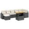 Salon de jardin 8 pcs avec coussins noir résine tresséeCet ensemble de canapés de jardin est le complément parfait de votre arrière-cour, terrasse ou patio, offrant un espace confortable et accueillant pour discuter avec la famille et les amis ou simplement se détendre et profiter de l'extérieur. Matériau durable : la résine tressée, également connue sous le nom de poly rotin, est un matériau synthétique solide et nécessitant peu d'entretien qui ressemble au rotin naturel. Il est léger, facile à nettoyer et couramment utilisé pour les meubles d'extérieur en raison de sa durabilité et de ses propriétés de résistance aux intempéries. Dessus stable et facile à nettoyer : cette table de jardin a un dessus en bois d'acacia robuste, durable et facile à nettoyer avec un chiffon humide. Housse amovible et lavable : ces coussins de siège sont dotés de housses amovibles pour un lavage et un entretien faciles. Cadre robuste et stable : le cadre en acier enduit de poudre assure la solidité et la stabilité du meuble de jardin pour une utilisation quotidienne à l'extérieur. Conception modulaire : cet ensemble de meubles d'extérieur a une conception modulaire, ce qui le rend complètement flexible et facile à déplacer, afin que vous puissiez créer un agencement de meubles d'extérieur personnalisé. Bon à savoir : Pour que vos meubles d'extérieur restent beaux, nous vous recommandons de les protéger avec une housse imperméable.