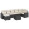 Salon de jardin 8 pcs avec coussins noir résine tresséeCet ensemble de canapés de jardin est le complément parfait de votre arrière-cour, terrasse ou patio, offrant un espace confortable et accueillant pour discuter avec la famille et les amis ou simplement se détendre et profiter de l'extérieur. Matériau durable : la résine tressée, également connue sous le nom de poly rotin, est un matériau synthétique solide et nécessitant peu d'entretien qui ressemble au rotin naturel. Il est léger, facile à nettoyer et couramment utilisé pour les meubles d'extérieur en raison de sa durabilité et de ses propriétés de résistance aux intempéries. Dessus en verre : le dessus de la table d'extérieur est fabriqué en verre trempé solide et durable, ce qui le rend facile à nettoyer avec un chiffon humide et ajoute une touche d'élégance à votre espace extérieur. Housse amovible et lavable : ces coussins de siège sont dotés de housses amovibles pour un lavage et un entretien faciles. Cadre robuste et stable : le cadre en acier enduit de poudre assure la solidité et la stabilité du meuble de jardin pour une utilisation quotidienne à l'extérieur. Conception modulaire : cet ensemble de meubles d'extérieur a une conception modulaire, ce qui le rend complètement flexible et facile à déplacer, afin que vous puissiez créer un agencement de meubles d'extérieur personnalisé. Bon à savoir : Pour que vos meubles d'extérieur restent beaux, nous vous recommandons de les protéger avec une housse imperméable.