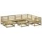 Salon de jardin 8 pcs bois de pin imprégnéCet ensemble de canapés de jardin est le complément parfait de votre arrière-cour, terrasse ou patio, offrant un espace confortable et accueillant pour discuter avec la famille et les amis ou simplement se détendre et profiter de l'extérieur. Matériau robuste et durable : le bois de pin massif est connu pour sa résistance et sa durabilité. Ses grains droits et ses noeuds distinctifs contribuent à son charme rustique. Il a été imprégné avec une solution de conservation et a subi un traitement en autoclave, ce qui renforce sa résistance à la pourriture et aux intempéries.Bien ventilé et prévention de l'accumulation d'eau : la conception à lattes favorise une circulation optimale de l'air et empêche efficacement l'accumulation d'eau, assurant ainsi une assise sèche et confortable.Conception modulaire : cet ensemble de meubles d'extérieur a une conception modulaire, ce qui le rend complètement flexible et facile à déplacer, afin que vous puissiez créer un agencement de meubles d'extérieur personnalisé. Bon à savoir :Pour que vos meubles d'extérieur restent beaux, nous vous recommandons de les protéger avec une housse imperméable. Maximum 110 kg par siège.