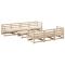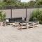 Salon de jardin 8 pcs bois de pin massifCet ensemble de canapés de jardin est le complément parfait de votre arrière-cour, terrasse ou patio, offrant un espace confortable et accueillant pour discuter avec la famille et les amis ou simplement se détendre et profiter de l'extérieur. Matériau robuste et durable : le bois de pin massif est connu pour sa résistance et sa durabilité. Ses grains droits et ses noeuds distinctifs contribuent à son charme rustique.Bien ventilé et prévention de l'accumulation d'eau : la conception à lattes favorise une circulation optimale de l'air et empêche efficacement l'accumulation d'eau, assurant ainsi une assise sèche et confortable.Conception modulaire : cet ensemble de meubles d'extérieur a une conception modulaire, ce qui le rend complètement flexible et facile à déplacer, afin que vous puissiez créer un agencement de meubles d'extérieur personnalisé. Bon à savoir :Pour que vos meubles d'extérieur restent beaux, nous vous recommandons de les protéger avec une housse imperméable. Maximum 110 kg par siège.