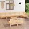 Salon de jardin 9 pcs Bois de pin massifCet ensemble de salon de jardin en bois est un choix idéal pour vous détendre, profiter du beau temps, faire une sieste ou discuter en famille ou entre amis. Avec son design intemporel de palette, l'ensemble de canapés en bois ajoute une touche de charme rustique à votre terrasse, jardin ou salon. Fabriqué en bois de pin massif, cet ensemble de mobilier d'extérieur est très durable et résistant aux intempéries. Cet ensemble de canapés a une construction solide et nécessite peu d'entretien. De plus, la conception modulaire permet également de placer l'ensemble dans n'importe quel arrangement selon vos goûts. Remarque : afin de prolonger la durée de vie des meubles d'extérieur, nous vous recommandons de les protéger avec une housse imperméable. Maximum 110 kg par siège.