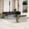 Salon de jardin 9 pcs avec coussins Gris Résine tresséeCet ensemble de salon de jardin tendance, au design élégant et contemporain, est un excellent choix pour vous détendre dans votre jardin. Matériau durable : la résine tressée, également connue sous le nom de rotin poly, résiste aux intempéries et est facile à nettoyer. Elle reste belle à l'extérieur pendant une longue période. Elle est plus économique que d'autres matériaux, tout en offrant une excellente qualité, une commodité et un aspect esthétique. Cadre stable : l'acier est un matériau exceptionnellement dur et résistant. Il offre robustesse et stabilité. Le revêtement en poudre sur l'acier crée une couche protectrice contre l'usure. Conception modulaire : chaque pièce est facile à déplacer, ce qui vous permet de créer facilement différents agencements adaptés à vos besoins. Vous pouvez également trouver les pièces individuelles dans notre boutique en ligne pour arranger vos propres modèles de meubles. Expérience de siège confortable : avec les coussins de siège et de dossier bien rembourrés, l'ensemble de salon d'extérieur est très confortable. Bon à savoir : Pour faciliter au maximum le montage, chaque produit est livré avec des instructions. Remarque : Pour que vos meubles d'extérieur restent beaux, nous vous recommandons de les protéger avec une housse imperméable. Maximum 110 kg par siège. ,