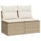 Salon de jardin avec coussins 2 pcs beige résine tressée acaciaCet ensemble de canapés de jardin est le complément parfait de votre arrière-cour, terrasse ou patio, offrant un espace confortable et accueillant pour discuter avec la famille et les amis ou simplement se détendre et profiter de l'extérieur.Matériau durable : la résine tressée, également connue sous le nom de poly rotin, est un matériau synthétique solide et nécessitant peu d'entretien qui ressemble au rotin naturel. Elle est légère, facile à nettoyer et couramment utilisée pour les meubles d'extérieur en raison de sa durabilité et de ses propriétés de résistance aux intempéries.Fonction de rangement avec sac résistant à l'eau : chaque siège de jardin dispose d'un espace de rangement sous l'assise, complété par un sac résistant à l'eau pour ranger les coussins, les jouets et d'autres objets. Les sacs intérieurs sont dotés d'un couvercle et peuvent être solidement fixés aux sièges à l'aide de bandes auto-agrippantes pour plus de stabilité.Housse amovible et lavable : ces coussins de siège sont dotés de housses amovibles pour un lavage et un entretien faciles.Conception modulaire : cet ensemble de meubles d'extérieur a une conception modulaire, ce qui le rend complètement flexible et facile à déplacer, afin que vous puissiez créer un agencement de meubles d'extérieur personnalisé.Bon à savoir :Pour que vos meubles d'extérieur restent beaux, nous vous recommandons de les protéger avec une housse imperméable.