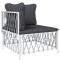 Salon de jardin avec coussins 2 pcs blanc acierProfitez d'une tasse de café ou de thé dans votre espace extérieur avec cet ensemble de salon de jardin confortable ! Matériau durable : le tissu tissé est tout textile formé par tissage. C'est un type de tissu extrêmement utile que nous utilisons beaucoup dans notre vie quotidienne en raison de sa durabilité et de sa polyvalence.Cadre robuste : le cadre en acier enduit de poudre rend l'ensemble de salon robuste et stable pour une utilisation quotidienne à l'extérieur.Expérience d'assise confortable : le dossier ajoute un confort d'assise supplémentaire au canapé d'extérieur. De plus, les coussins bien rembourrés offrent du confort pendant votre temps d'assise.Design modulaire : le canapé est flexible et facile à déplacer, vous pouvez donc le combiner avec d'autres segments modulaires de la boutique en ligne pour créer vos propres configurations de salon de jardin ! Remarque :Pour que vos meubles d'extérieur restent beaux, nous vous recommandons de les protéger avec une housse imperméable. Maximum 110 kg par siège. Soyez conscient du risque de feu ouvert et d'autres sources de forte chaleur à proximité de l'appareil.