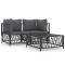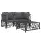 Salon de jardin avec coussins 3 pcs anthracite acierProfitez d'une tasse de café ou de thé dans votre espace extérieur avec cet ensemble de salon de jardin confortable ! Matériau durable : le tissu tissé est tout textile formé par tissage. C'est un type de tissu extrêmement utile que nous utilisons beaucoup dans notre vie quotidienne en raison de sa durabilité et de sa polyvalence.Cadre robuste : le cadre en acier enduit de poudre rend l'ensemble de salon robuste et stable pour une utilisation quotidienne à l'extérieur.Expérience d'assise confortable : le dossier ajoute un confort d'assise supplémentaire au canapé d'extérieur. De plus, les coussins bien rembourrés offrent du confort pendant votre temps d'assise.Design modulaire : le canapé est flexible et facile à déplacer, vous pouvez donc le combiner avec d'autres segments modulaires de la boutique en ligne pour créer vos propres configurations de salon de jardin ! Remarque :Pour que vos meubles d'extérieur restent beaux, nous vous recommandons de les protéger avec une housse imperméable. Maximum 110 kg par siège. Soyez conscient du risque de feu ouvert et d'autres sources de forte chaleur à proximité de l'appareil.