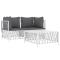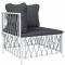 Salon de jardin avec coussins 3 pcs blanc acierProfitez d'une tasse de café ou de thé dans votre espace extérieur avec cet ensemble de salon de jardin confortable ! Matériau durable : le tissu tissé est tout textile formé par tissage. C'est un type de tissu extrêmement utile que nous utilisons beaucoup dans notre vie quotidienne en raison de sa durabilité et de sa polyvalence.Cadre robuste : le cadre en acier enduit de poudre rend l'ensemble de salon robuste et stable pour une utilisation quotidienne à l'extérieur.Expérience d'assise confortable : le dossier ajoute un confort d'assise supplémentaire au canapé d'extérieur. De plus, les coussins bien rembourrés offrent du confort pendant votre temps d'assise.Design modulaire : le canapé est flexible et facile à déplacer, vous pouvez donc le combiner avec d'autres segments modulaires de la boutique en ligne pour créer vos propres configurations de salon de jardin ! Remarque :Pour que vos meubles d'extérieur restent beaux, nous vous recommandons de les protéger avec une housse imperméable. Maximum 110 kg par siège. Soyez conscient du risque de feu ouvert et d'autres sources de forte chaleur à proximité de l'appareil.