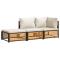Salon de jardin avec coussins 3 pcs bois massif d'acaciaCet ensemble de canapés de jardin est le complément parfait de votre arrière-cour, terrasse ou patio, offrant un espace confortable et accueillant pour discuter avec la famille et les amis ou simplement se détendre et profiter de l'extérieur. Cadre robuste et stable : le bois d'acacia massif est connu pour sa solidité et sa durabilité. Ses couleurs variées et ses grains uniques lui confèrent un aspect attrayant. Sa stabilité et sa résistance aux intempéries en font un matériau idéal pour la fabrication de meubles d'intérieur et d'extérieur. De plus, le cadre en acier enduit de poudre garantit la solidité et la stabilité du mobilier de jardin pour une utilisation quotidienne en extérieur. Bonne ventilation et prévention de l'accumulation d'eau : la conception à lattes favorise une circulation optimale de l'air et empêche efficacement l'accumulation d'eau, assurant ainsi un mobilier de jardin sec et confortable.Expérience d'assise confortable : ce mobilier d'extérieur, doté de coussins épais, offre une expérience d'assise confortable. Housse amovible et lavable : ces coussins de siège sont dotés de housses amovibles pour un lavage et un entretien faciles. Bon à savoir :Pour que vos meubles d'extérieur restent beaux, nous vous recommandons de les protéger avec une housse imperméable. Maximum 110 kg par siège.