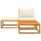 Salon de jardin avec coussins 3 pcs bois massif d'acaciaCet ensemble de canapés de jardin en bois avec coussins sera un excellent complément à votre jardin, terrasse ou patio pour discuter avec la famille et les amis ou simplement profiter du temps. Cadre robuste et stable : le bois d'acacia massif est connu pour sa solidité et sa durabilité. Ses couleurs variées et ses grains uniques lui confèrent un aspect attrayant. Sa stabilité et sa résistance aux intempéries en font un matériau idéal pour la fabrication de meubles d'intérieur et d'extérieur.Expérience d'assise confortable : ce mobilier d'extérieur, doté de coussins épais, offre une expérience d'assise confortable.Housse amovible et lavable : ces coussins de siège sont dotés de housses amovibles pour un lavage et un entretien faciles.Dessus stable et facile à nettoyer : cette table de jardin a un dessus en bois d'acacia robuste, durable et facile à nettoyer avec un chiffon humide.Conception modulaire : cet ensemble de meubles d'extérieur a une conception modulaire, ce qui le rend complètement flexible et facile à déplacer, afin que vous puissiez créer un agencement de meubles d'extérieur personnalisé. Bon à savoir :Pour que vos meubles d'extérieur restent beaux, nous vous recommandons de les protéger avec une housse imperméable. Maximum 110 kg par siège. Soyez conscient du risque de feux ouverts et d'autres sources de forte chaleur à proximité du produit.