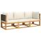 Salon de jardin avec coussins 3 pcs bois massif d'acaciaCet ensemble de canapés de jardin est le complément parfait de votre arrière-cour, terrasse ou patio, offrant un espace confortable et accueillant pour discuter avec la famille et les amis ou simplement se détendre et profiter de l'extérieur. Cadre robuste et stable : le bois d'acacia massif est connu pour sa solidité et sa durabilité. Ses couleurs variées et ses grains uniques lui confèrent un aspect attrayant. Sa stabilité et sa résistance aux intempéries en font un matériau idéal pour la fabrication de meubles d'intérieur et d'extérieur. Expérience d'assise confortable : ce mobilier d'extérieur, doté de coussins épais, offre une expérience d'assise confortable.Bonne ventilation et prévention de l'accumulation d'eau : la conception à lattes favorise une circulation optimale de l'air et empêche efficacement l'accumulation d'eau, assurant ainsi un mobilier de jardin sec et confortable.Housse amovible et lavable : ces coussins de siège sont dotés de housses amovibles pour un lavage et un entretien faciles.Conception modulaire : ce meuble d'extérieur a une conception modulaire, ce qui le rend complètement flexible et facile à déplacer, afin que vous puissiez créer un agencement de meubles d'extérieur personnalisé. Bon à savoir :Pour que vos meubles d'extérieur restent beaux, nous vous recommandons de les protéger avec une housse imperméable. Maximum 110 kg par siège. Soyez conscient du risque de feu ouvert et d'autres sources de forte chaleur à proximité de l'appareil.