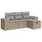 Salon de jardin avec coussins 4 pcs beige résine tresséeCet ensemble de canapés de jardin est le complément parfait de votre arrière-cour, terrasse ou patio, offrant un espace confortable et accueillant pour discuter avec la famille et les amis ou simplement se détendre et profiter de l'extérieur. Matériau durable : la résine tressée, également connue sous le nom de poly rotin, est un matériau synthétique solide et nécessitant peu d'entretien qui ressemble au rotin naturel. Elle est légère, facile à nettoyer et couramment utilisée pour les meubles d'extérieur en raison de sa durabilité et de ses propriétés de résistance aux intempéries.Fonction de rangement avec sac résistant à l'eau : le mobilier de jardin dispose d'un espace de rangement sous l'assise, complété par un sac résistant à l'eau pour ranger coussins, jouets et autres objets. Le sac intérieur peut être solidement fixé au mobilier d'extérieur grâce à des attaches auto-agrippantes pour plus de stabilité.Pouf polyvalent : le tabouret est polyvalent, servant de repose-pieds confortable lorsque vous vous prélassez sur le canapé ou de siège supplémentaire dans votre jardin.Housse amovible et lavable : ces coussins de siège sont dotés de housses amovibles pour un lavage et un entretien faciles.Conception modulaire : cet ensemble de meubles d'extérieur a une conception modulaire, ce qui le rend complètement flexible et facile à déplacer, afin que vous puissiez créer un agencement de meubles d'extérieur personnalisé. Bon à savoir :Pour que vos meubles d'extérieur restent beaux, nous vous recommandons de les protéger avec une housse imperméable.