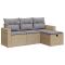 Salon de jardin avec coussins 4 pcs beige résine tresséeCet ensemble de canapés de jardin est le complément parfait de votre arrière-cour, terrasse ou patio, offrant un espace confortable et accueillant pour discuter avec la famille et les amis ou simplement se détendre et profiter de l'extérieur. Matériau durable : la résine tressée, également connue sous le nom de poly rotin, est un matériau synthétique solide et nécessitant peu d'entretien qui ressemble au rotin naturel. Elle est légère, facile à nettoyer et couramment utilisée pour les meubles d'extérieur en raison de sa durabilité et de ses propriétés de résistance aux intempéries.Fonction de rangement avec sac résistant à l'eau : le mobilier de jardin dispose d'un espace de rangement sous l'assise, complété par un sac résistant à l'eau pour ranger coussins, jouets et autres objets. Le sac intérieur peut être solidement fixé au mobilier d'extérieur grâce à des attaches auto-agrippantes pour plus de stabilité.Pouf polyvalent : le tabouret est polyvalent, servant de repose-pieds confortable lorsque vous vous prélassez sur le canapé ou de siège supplémentaire dans votre jardin.Housse amovible et lavable : ces coussins de siège sont dotés de housses amovibles pour un lavage et un entretien faciles.Conception modulaire : cet ensemble de meubles d'extérieur a une conception modulaire, ce qui le rend complètement flexible et facile à déplacer, afin que vous puissiez créer un agencement de meubles d'extérieur personnalisé. Bon à savoir :Pour que vos meubles d'extérieur restent beaux, nous vous recommandons de les protéger avec une housse imperméable.
