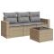 Salon de jardin avec coussins 4 pcs beige résine tresséeCet ensemble de canapés de jardin est le complément parfait de votre arrière-cour, terrasse ou patio, offrant un espace confortable et accueillant pour discuter avec la famille et les amis ou simplement se détendre et profiter de l'extérieur. Matériau durable : la résine tressée, également connue sous le nom de poly rotin, est un matériau synthétique solide et nécessitant peu d'entretien qui ressemble au rotin naturel. Il est léger, facile à nettoyer et couramment utilisé pour les meubles d'extérieur en raison de sa durabilité et de ses propriétés de résistance aux intempéries. Fonction de rangement avec sac résistant à l'eau : chaque siège de jardin dispose d'un espace de rangement sous l'assise, complété par un sac résistant à l'eau pour ranger les coussins, les jouets et d'autres objets. Les sacs intérieurs sont dotés d'un couvercle et peuvent être solidement fixés aux sièges à l'aide de bandes auto-agrippantes pour plus de stabilité. Dessus en verre : le dessus de la table d'extérieur est fabriqué en verre trempé solide et durable, ce qui le rend facile à nettoyer avec un chiffon humide et ajoute une touche d'élégance à votre espace extérieur. Housse amovible et lavable : ces coussins de siège sont dotés de housses amovibles pour un lavage et un entretien faciles. Conception modulaire : cet ensemble de meubles d'extérieur a une conception modulaire, ce qui le rend complètement flexible et facile à déplacer, afin que vous puissiez créer un agencement de meubles d'extérieur personnalisé. Bon à savoir : Pour que vos meubles d'extérieur restent beaux, nous vous recommandons de les protéger avec une housse imperméable. ,