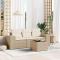 Salon de jardin avec coussins 4 pcs beige résine tresséeCet ensemble de canapés de jardin est le complément parfait de votre arrière-cour, terrasse ou patio, offrant un espace confortable et accueillant pour discuter avec la famille et les amis ou simplement se détendre et profiter de l'extérieur. Matériau durable : la résine tressée, également connue sous le nom de poly rotin, est un matériau synthétique solide et nécessitant peu d'entretien qui ressemble au rotin naturel. Il est léger, facile à nettoyer et couramment utilisé pour les meubles d'extérieur en raison de sa durabilité et de ses propriétés de résistance aux intempéries.Fonction de rangement avec sac résistant à l'eau : le mobilier de jardin dispose d'un espace de rangement sous l'assise, complété par un sac résistant à l'eau pour ranger coussins, jouets et autres objets. Le sac intérieur peut être solidement fixé au mobilier d'extérieur grâce à des attaches auto-agrippantes pour plus de stabilité.Dessus en verre : le dessus de la table d'extérieur est fabriqué en verre trempé solide et durable, ce qui le rend facile à nettoyer avec un chiffon humide et ajoute une touche d'élégance à votre espace extérieur.Housse amovible et lavable : ces coussins de siège sont dotés de housses amovibles pour un lavage et un entretien faciles.Conception modulaire : cet ensemble de meubles d'extérieur a une conception modulaire, ce qui le rend complètement flexible et facile à déplacer, afin que vous puissiez créer un agencement de meubles d'extérieur personnalisé. Bon à savoir :Pour que vos meubles d'extérieur restent beaux, nous vous recommandons de les protéger avec une housse imperméable.