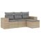 Salon de jardin avec coussins 4 pcs beige résine tresséeCet ensemble de canapés de jardin est le complément parfait de votre arrière-cour, terrasse ou patio, offrant un espace confortable et accueillant pour discuter avec la famille et les amis ou simplement se détendre et profiter de l'extérieur. Matériau durable : la résine tressée, également connue sous le nom de poly rotin, est un matériau synthétique solide et nécessitant peu d'entretien qui ressemble au rotin naturel. Il est léger, facile à nettoyer et couramment utilisé pour les meubles d'extérieur en raison de sa durabilité et de ses propriétés de résistance aux intempéries.Fonction de rangement avec sac résistant à l'eau : le mobilier de jardin dispose d'un espace de rangement sous l'assise, complété par un sac résistant à l'eau pour ranger coussins, jouets et autres objets. Le sac intérieur peut être solidement fixé au mobilier d'extérieur grâce à des attaches auto-agrippantes pour plus de stabilité.Housse amovible et lavable : ces coussins de siège sont dotés de housses amovibles pour un lavage et un entretien faciles.Conception modulaire : cet ensemble de meubles d'extérieur a une conception modulaire, ce qui le rend complètement flexible et facile à déplacer, afin que vous puissiez créer un agencement de meubles d'extérieur personnalisé. Bon à savoir :Pour que vos meubles d'extérieur restent beaux, nous vous recommandons de les protéger avec une housse imperméable.