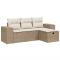 Salon de jardin avec coussins 4 pcs beige résine tresséeCet ensemble de canapés de jardin est le complément parfait de votre arrière-cour, terrasse ou patio, offrant un espace confortable et accueillant pour discuter avec la famille et les amis ou simplement se détendre et profiter de l'extérieur. Matériau durable : la résine tressée, également connue sous le nom de poly rotin, est un matériau synthétique solide et nécessitant peu d'entretien qui ressemble au rotin naturel. Il est léger, facile à nettoyer et couramment utilisé pour les meubles d'extérieur en raison de sa durabilité et de ses propriétés de résistance aux intempéries.Expérience d'assise confortable : ce mobilier d'extérieur, doté de coussins épais, offre une expérience d'assise confortable.Housse amovible et lavable : ces coussins de siège sont dotés de housses amovibles pour un lavage et un entretien faciles.Cadre robuste et stable : le cadre en acier enduit de poudre assure la solidité et la stabilité du meuble de jardin pour une utilisation quotidienne à l'extérieur.Conception modulaire : cet ensemble de meubles d'extérieur a une conception modulaire, ce qui le rend complètement flexible et facile à déplacer, afin que vous puissiez créer un agencement de meubles d'extérieur personnalisé. Bon à savoir :Pour que vos meubles d'extérieur restent beaux, nous vous recommandons de les protéger avec une housse imperméable.