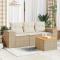 Salon de jardin avec coussins 4 pcs beige résine tresséeCet ensemble de canapés de jardin est le complément parfait de votre arrière-cour, terrasse ou patio, offrant un espace confortable et accueillant pour discuter avec la famille et les amis ou simplement se détendre et profiter de l'extérieur. Matériau durable : la résine tressée, également connue sous le nom de poly rotin, est un matériau synthétique solide et nécessitant peu d'entretien qui ressemble au rotin naturel. Il est léger, facile à nettoyer et couramment utilisé pour les meubles d'extérieur en raison de sa durabilité et de ses propriétés de résistance aux intempéries. Fonction de rangement avec sac résistant à l'eau : chaque siège de jardin dispose d'un espace de rangement sous l'assise, complété par un sac résistant à l'eau pour ranger les coussins, les jouets et d'autres objets. Les sacs intérieurs sont dotés d'un couvercle et peuvent être solidement fixés aux sièges à l'aide de bandes auto-agrippantes pour plus de stabilité. Dessus stable et facile à nettoyer : cette table de jardin a un dessus en bois d'acacia robuste, durable et facile à nettoyer avec un chiffon humide. Expérience d'assise confortable : ce mobilier d'extérieur, doté de coussins épais, offre une expérience d'assise confortable. Conception modulaire : cet ensemble de meubles d'extérieur a une conception modulaire, ce qui le rend complètement flexible et facile à déplacer, afin que vous puissiez créer un agencement de meubles d'extérieur personnalisé. Bon à savoir :Pour que vos meubles d'extérieur restent beaux, nous vous recommandons de les protéger avec une housse imperméable.