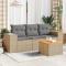 Salon de jardin avec coussins 4 pcs beige résine tresséeCet ensemble de canapés de jardin est le complément parfait de votre arrière-cour, terrasse ou patio, offrant un espace confortable et accueillant pour discuter avec la famille et les amis ou simplement se détendre et profiter de l'extérieur. Matériau durable : la résine tressée, également connue sous le nom de poly rotin, est un matériau synthétique solide et nécessitant peu d'entretien qui ressemble au rotin naturel. Il est léger, facile à nettoyer et couramment utilisé pour les meubles d'extérieur en raison de sa durabilité et de ses propriétés de résistance aux intempéries. Fonction de rangement avec sac résistant à l'eau : chaque siège de jardin dispose d'un espace de rangement sous l'assise, complété par un sac résistant à l'eau pour ranger les coussins, les jouets et d'autres objets. Les sacs intérieurs sont dotés d'un couvercle et peuvent être solidement fixés aux sièges à l'aide de bandes auto-agrippantes pour plus de stabilité. Dessus stable et facile à nettoyer : cette table de jardin a un dessus en bois d'acacia robuste, durable et facile à nettoyer avec un chiffon humide. Expérience d'assise confortable : ce mobilier d'extérieur, doté de coussins épais, offre une expérience d'assise confortable. Conception modulaire : cet ensemble de meubles d'extérieur a une conception modulaire, ce qui le rend complètement flexible et facile à déplacer, afin que vous puissiez créer un agencement de meubles d'extérieur personnalisé. Bon à savoir :Pour que vos meubles d'extérieur restent beaux, nous vous recommandons de les protéger avec une housse imperméable.
