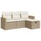 Salon de jardin avec coussins 4 pcs beige résine tresséeCet ensemble de canapés de jardin est le complément parfait de votre arrière-cour, terrasse ou patio, offrant un espace confortable et accueillant pour discuter avec la famille et les amis ou simplement se détendre et profiter de l'extérieur. Matériau durable : la résine tressée, également connue sous le nom de poly rotin, est un matériau synthétique solide et nécessitant peu d'entretien qui ressemble au rotin naturel. Elle est légère, facile à nettoyer et couramment utilisée pour les meubles d'extérieur en raison de sa durabilité et de ses propriétés de résistance aux intempéries.Fonction de rangement avec sac résistant à l'eau : le mobilier de jardin dispose d'un espace de rangement sous l'assise, complété par un sac résistant à l'eau pour ranger coussins, jouets et autres objets. Le sac intérieur peut être solidement fixé au mobilier d'extérieur grâce à des attaches auto-agrippantes pour plus de stabilité.Pouf polyvalent : le tabouret est polyvalent, servant de repose-pieds confortable lorsque vous vous prélassez sur le canapé ou de siège supplémentaire dans votre jardin.Housse amovible et lavable : ces coussins de siège sont dotés de housses amovibles pour un lavage et un entretien faciles.Conception modulaire : cet ensemble de meubles d'extérieur a une conception modulaire, ce qui le rend complètement flexible et facile à déplacer, afin que vous puissiez créer un agencement de meubles d'extérieur personnalisé. Bon à savoir :Pour que vos meubles d'extérieur restent beaux, nous vous recommandons de les protéger avec une housse imperméable.
